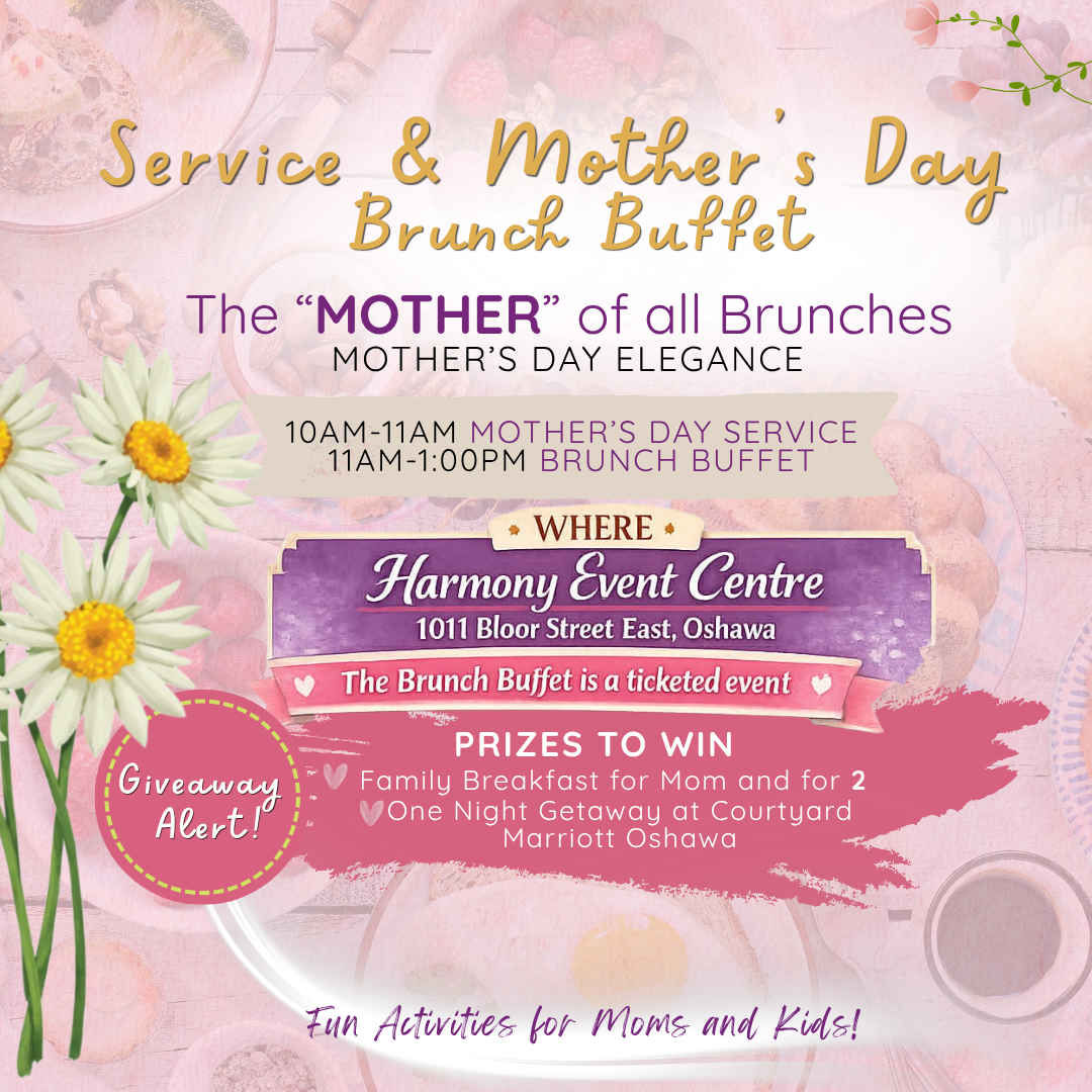 Moms, we honour you! Join us for an anointed Mother's Day service with Pastor Derek and his mom Judy Schneider. Then, continue the celebration with a delicious Mother's Day brunch buffet with fellowship. The brunch buffet is a ticketed event. All are welcome!