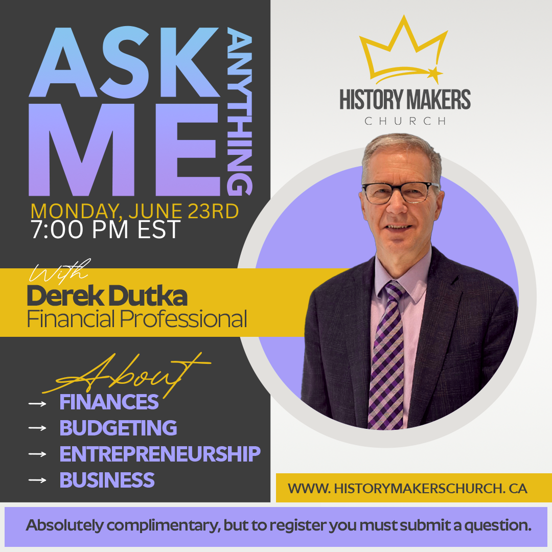 This is an unprecedented opportunity to ask Derek Dutka anything as it relates to finances and business.